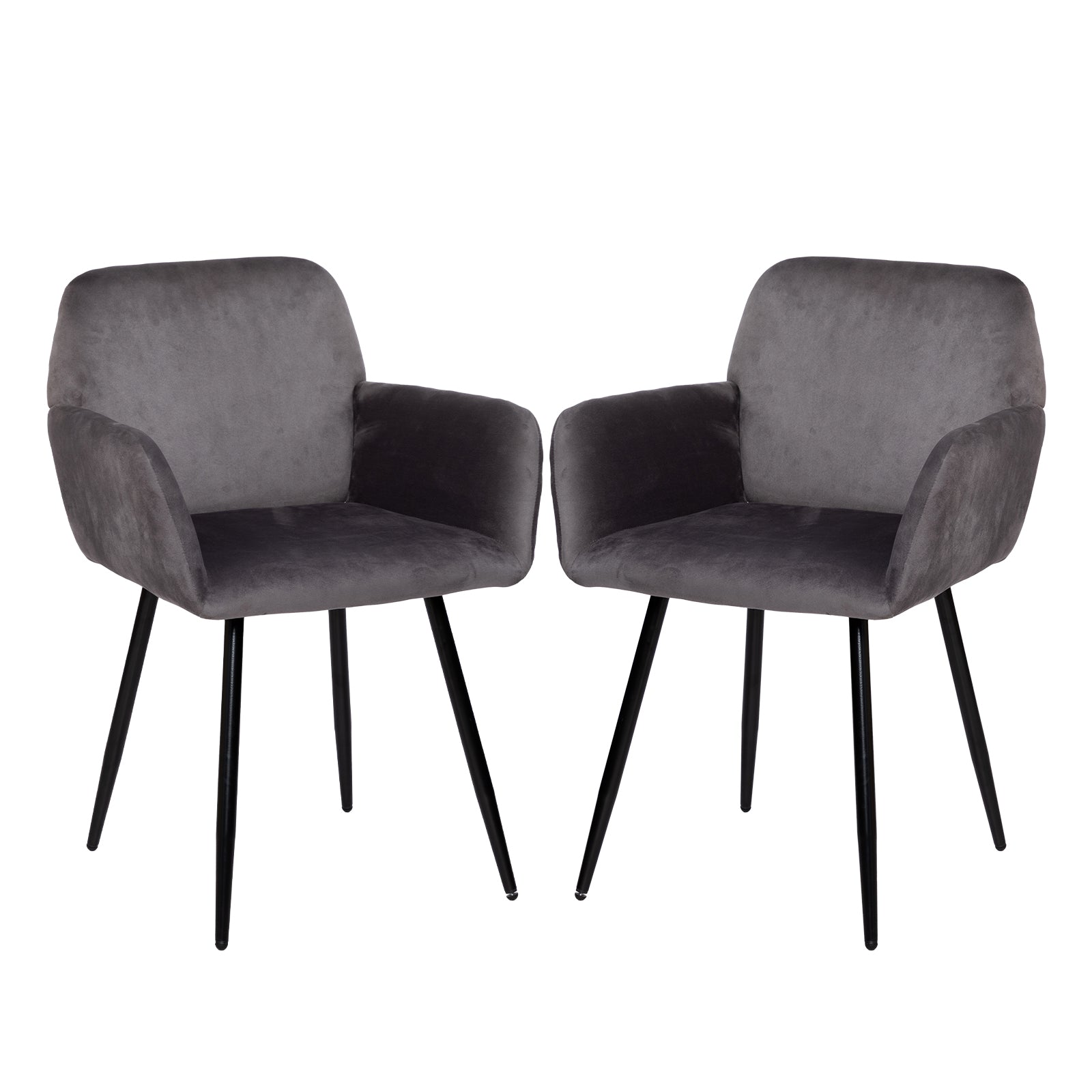 2x Chaises de Salle à Manger Scandinaves Rembourrées avec Accoudoirs Velours Chaises de Cuisine Pieds en Métal Ergonomique , Gris