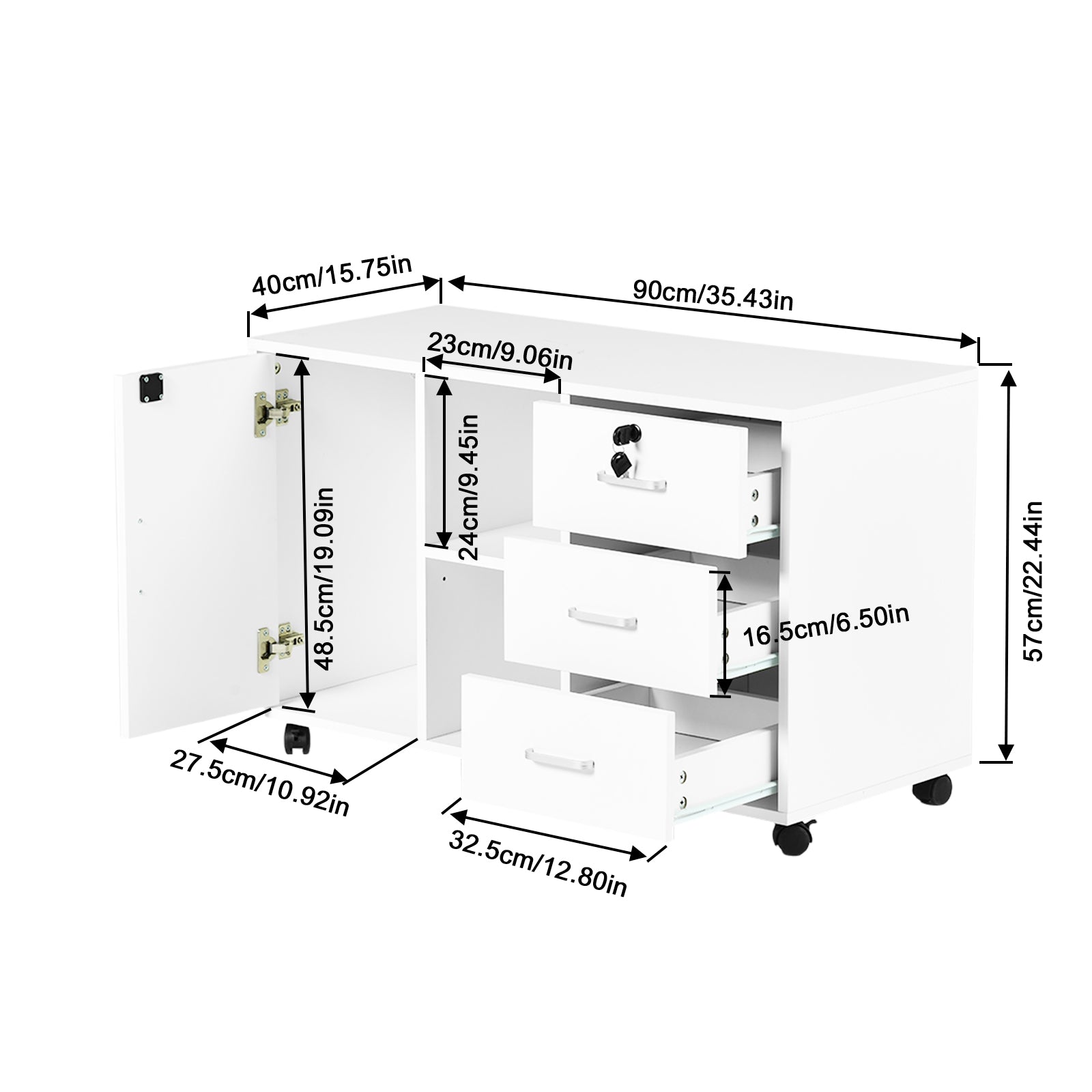 **Conception pratique et mobile :** Ce classeur est équipé de roulettes flexibles, permettant un déplacement aisé au bureau ou à la maison. Que ce soit pour réorganiser votre espace de travail ou pour un usage quotidien, il s'adapte facilement à vos besoins.