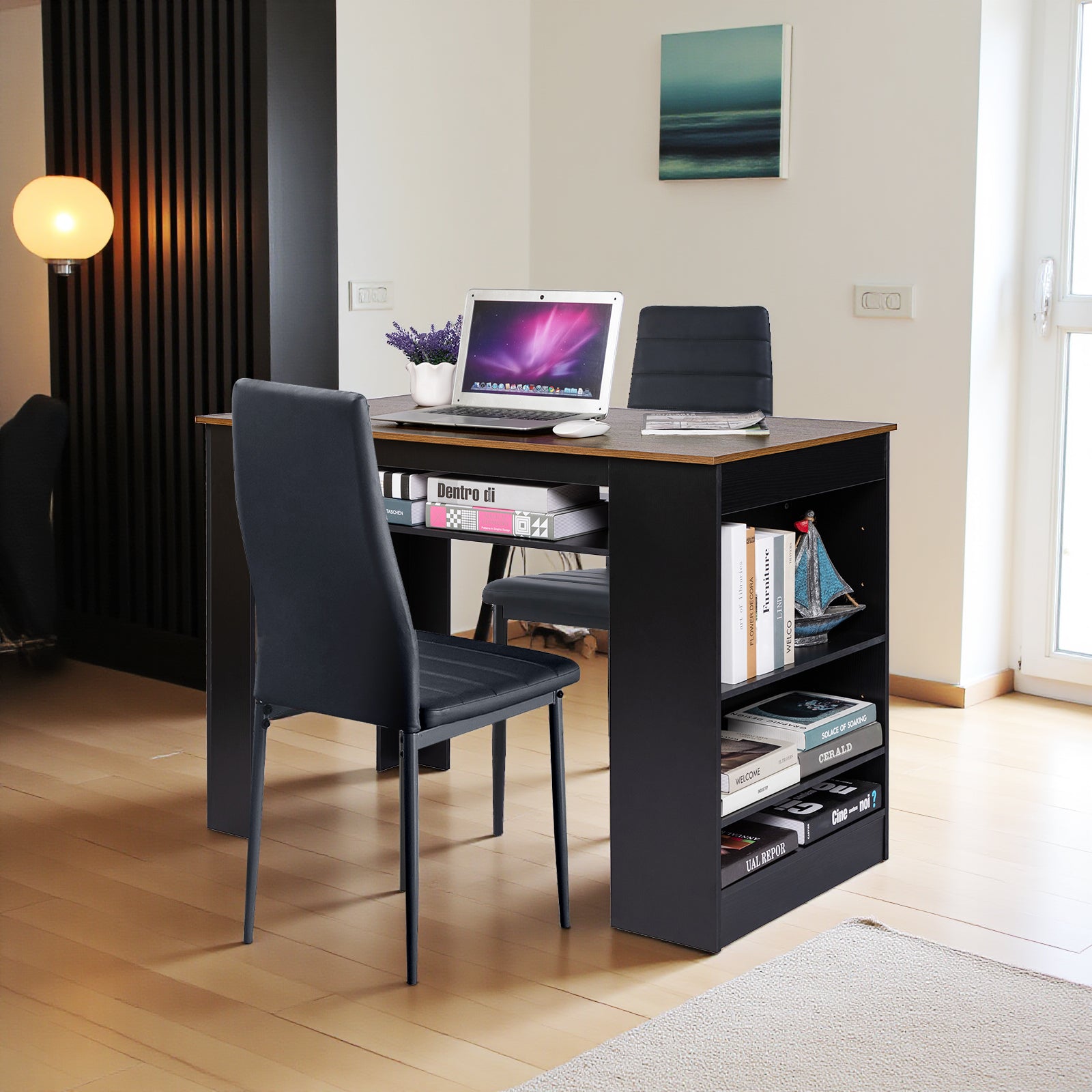 Bureau moderne avec prise électrique intégrée et ports USB, étagère réglable en hauteur, structure en MDF solide, 110 x 60 x 78 cm, charge maximale 50 kg, facile à nettoyer, noyer et noir, idéal pour espace de travail