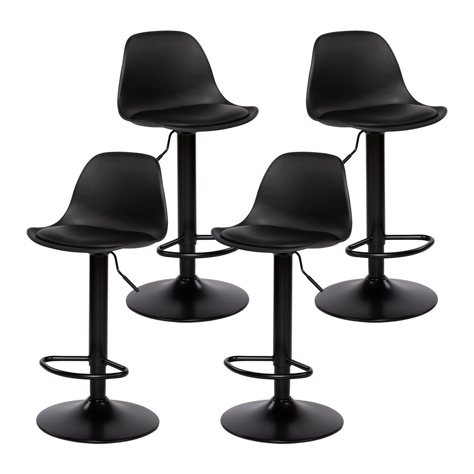 Chaise de Bar Lot de 4 - Tabouret Réglable en Hauteur avec Dossier et Repose-Pieds, Pivotant à 360°, Design Moderne pour Cuisine, Îlot Central, Café et Salle à Manger, Noir