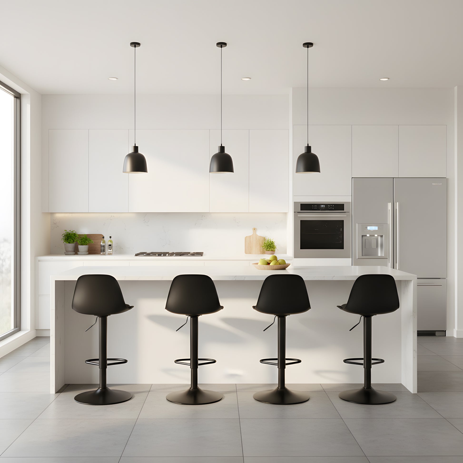 【Stabilité et Sécurité】la stabilité est la pièce maîtresse du design. Notre chaise haute cuisine dispose d'un plateau de fond renforcé élargi et d'une structure en métal robuste avec une capacité de charge allant jusqu'à 120 kg. Toutes les pièces métalliques sont recouvertes d'un revêtement en poudre noir mat, résistant à l'abrasion et facile d'entretien. Cette construction minimise les vibrations et les inclinaisons au maximum et offre une protection fiable pour un usage quotidien