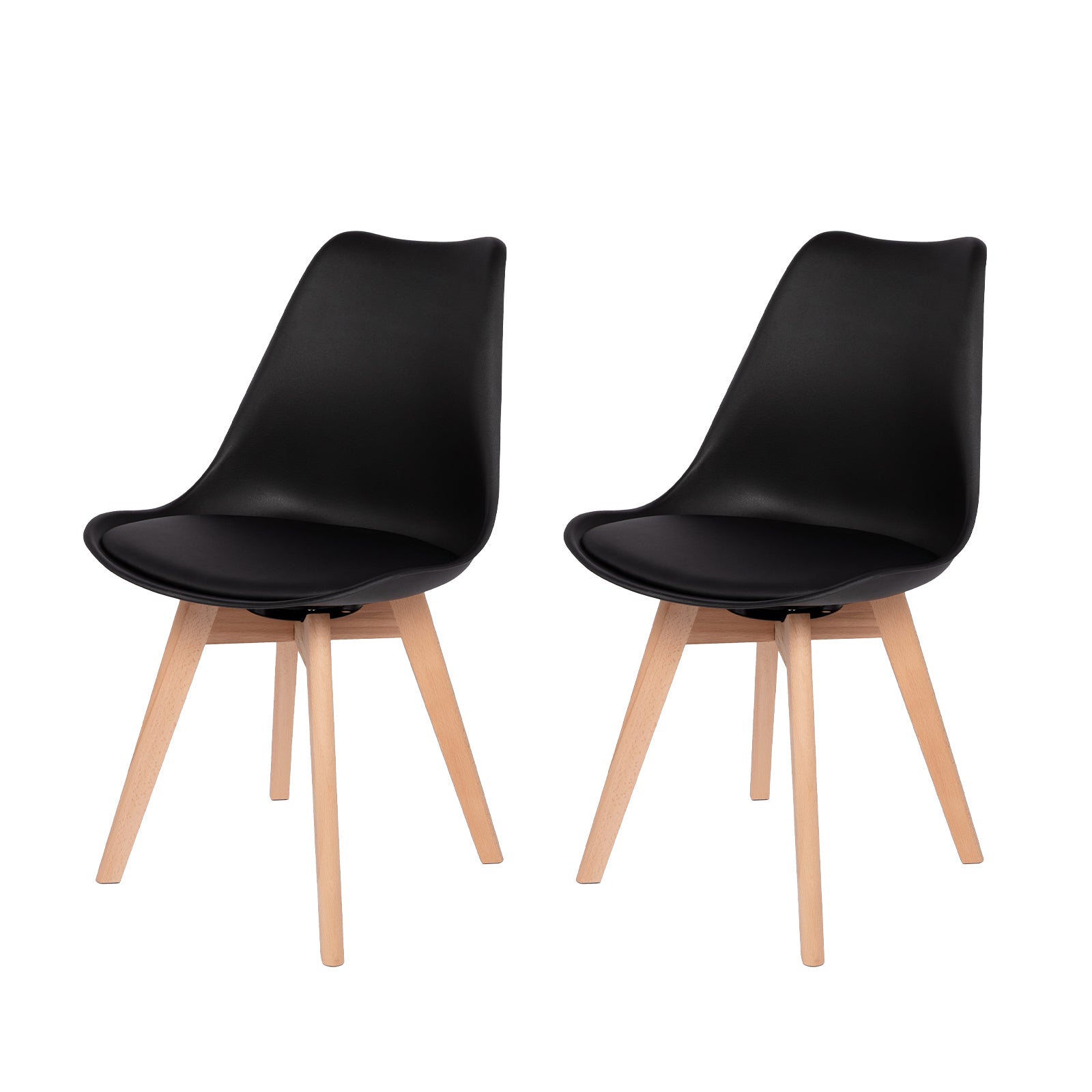 Ensemble de 2 chaises de salle à manger pivotantes, chaise sans accoudoirs, chaises rembourrées avec pieds en bois massif, noir