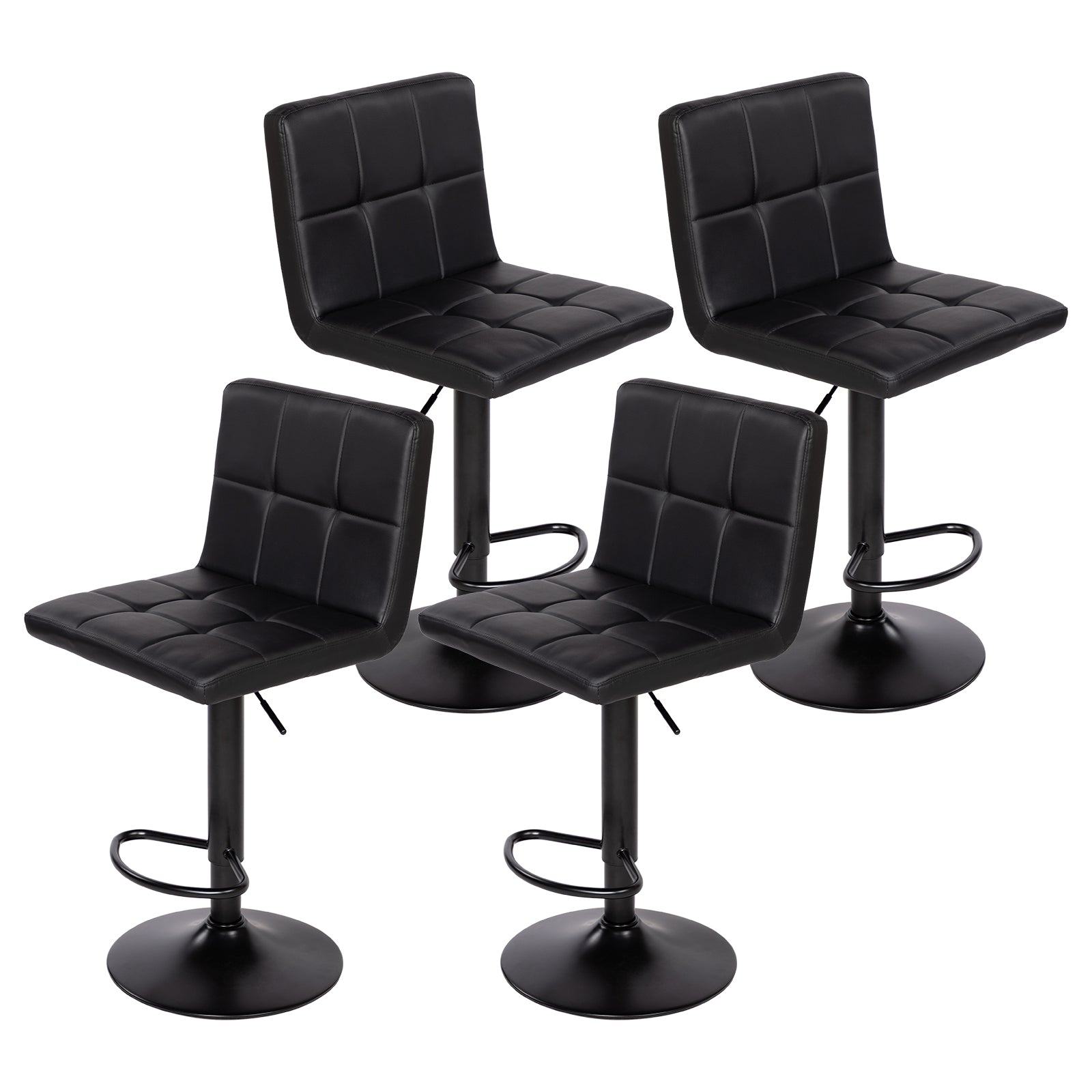 Tabouret de Bar Lot de 4 - Chaise Haute Réglable en Hauteur avec Dossier, Repose-Pieds et Rotation 360°, Cuir Synthétique Durable, Design Moderne pour Cuisine, Ilot Central, Café et Salle à Manger, Noir